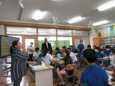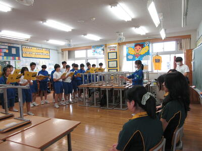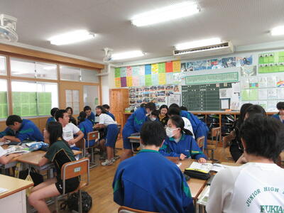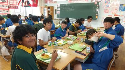 10月4日(金)にオーストラリアのボーカムヒルズ高校の生徒たちが吹上中学校を訪れました。3年生と一緒に給食を食べ、5時間目は数学と英語の授業に参加しました。昼休みは合唱練習の見学もしました。積極的に交流する姿が見られ、充実した時間となりました。
