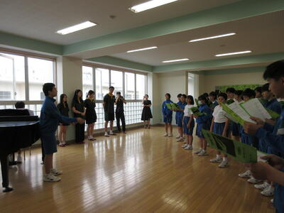 いよいよ来週は音楽祭です。10月22日(火)に最後の学年練習を行いました。パートごとに分かれて、練習を行った後、全体で合わせました。指揮者からは「この学年合唱が今までで最高の合唱になるように、緑学年みんなでがんばろう」という声かけがありました。この日の合唱は先週よりもぐんとレベルアップしたものとなりました。