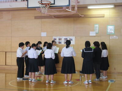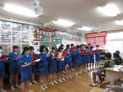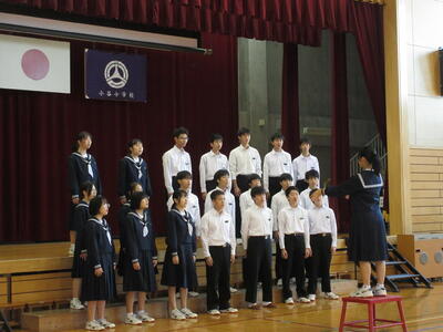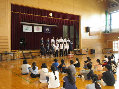 小・中音楽交流会がありました。11月5日(火)に3年2組は小谷学校、3年3組は大芦小学校へ行きました。1組は11月8日(金)に吹上小学校へ行き、合唱を披露してきました。しっかりとした態度で参加することができました。小学生たちからたくさんの拍手をいただくことができました。一緒に「翼をください」を歌った学校もありました。良い交流会となりました。