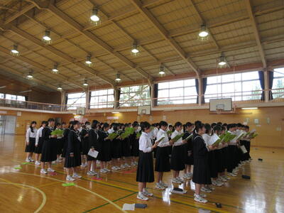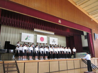 音楽祭が近づいてきました。7日(月)は全校合唱練習でした。この日は校歌と全校合唱「時を越えて」を練習しました。みんな一生懸命に歌っていました。1,2年生を引っ張って行く、素晴らしい歌声をこれからも響かせてほしいと覆います。