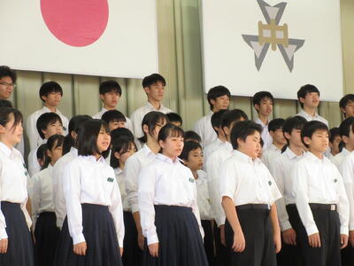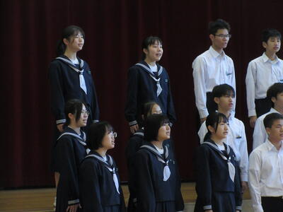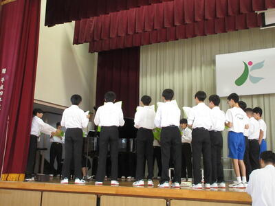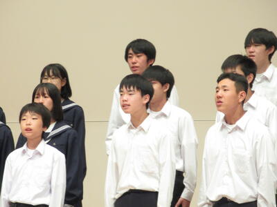 10月29日(火)に音楽祭が行われました。どのクラスもこれまでの成果を十分に発揮して、素晴らしい合唱を披露することができました。学年合唱「群青」は、最高学年として後輩達のお手本となる素晴らしい合唱となりました。