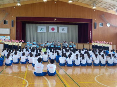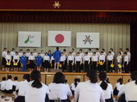 整った会場で、校歌の練習をしました。最上級生として1年生を迎える準備ができました。