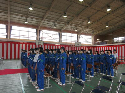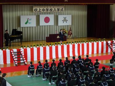 入学式準備は、卒業式と同じ場所を担当するので、旧クラスで行いました。前回よりもずっと手際がよくなり、みんなテキパキと動いてくれたので12班過ぎに大方終えることができました。その後、着替えて12時50分に入場し、2年生と一緒に再び校歌の練習。13時20分から入学式が始まりました。