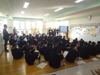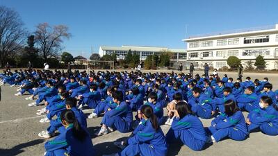 12月23日(月)に避難訓練を行いました。今回は、火災を想定した訓練でした。みんな冷静にすばやく避難し、どの学年も3分以内で避難することができました。各学年代表による消化訓練もありました。担当からは、非常時には、まず自分の命を守る行動を取ること、また、自分の命を守った上で、火災を広げないための行動が取ることが大切であるなどの話がありました。