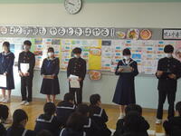 先日行われた配膳コンクールの表彰を行いました。最優秀賞は3年1組、優秀賞は3年3組でした。どのクラスもいつも以上に声が飛び交っていました。3学期も引き続き、クラス皆で楽しい給食の時間をつくれるよう協力していきましょう。