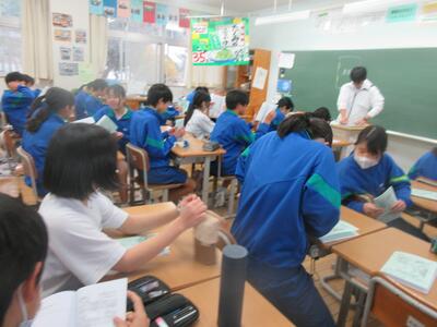 後期給食委員によるミニ給食指導が行われました。内容は吹上中学校の残食の現状についてです。1学期に比べて、若干増えてきている残食を減らせるように、クラスでできる協力をみんなでしていきましょう。