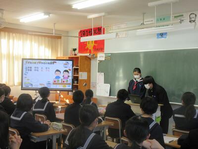 11月27日(木)に学校保健委員会が行われました。今回は、「換気の仕方について」というテーマで、学校保健委員によるミニ保健指導がありました。みんな保健委員の話を真剣に聞いていました。これから寒くなってきますが、換気をしっかりして、感染症予防に努めていきましょう。