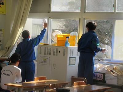 12月19日(木)に大掃除とワックスがけを行いました。机やいすのはかまをきれいにしたり、窓を磨いたり、日頃はできないところまで丁寧に掃除をしていました。放課後に、環境美化委員が教室床のワックスがけをしてくれました。お陰で、床がピカピカになりました。みんなありがとう。