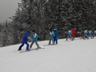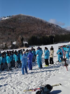 1年生スキー教室2日目の朝を迎え、スキー講習が始まります。