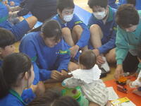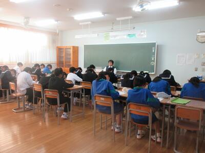 11月12日(火)の2時間目に現役助産師の青木先生に赤ちゃん誕生の講話をしていただき、3時間目に班ごとに分かれてお母さんとお子さん方とのふれあい体験を行いました。幼児の小ささや反応に命の大切さを学んだ時間になりました。