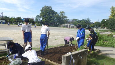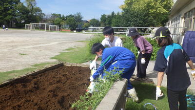 秋の空気に入れ替わった雰囲気を感じる9月22日(月)の1時間目、あすなろ学級では畑づくりを行いました。大根やカブを育てます。さつまいももすっかりツルを伸ばし元気に育ちました。収穫が楽しみです。