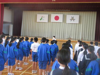 15日(水)、学年朝会が行われました。学級委員の司会・進行も少しずつ慣れてきましたね。今回は生活・体育・給食の3つの委員会からの振り返りと課題を発表してもらいました。中学校生活がはじまって早2ヶ月が過ぎようとしています。自分の仕事に責任を持ち、引き続き頑張りましょう。この日、陸上部は一足早く大会でした。陸上部のみなさん、おつかれさま!