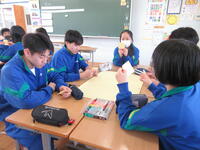 12日(金)に授業参観と学級懇談会が行われました。授業参観では、「宝探し」というグループワークを行いました。それぞれの指示書から情報を合わせて、宝の地図を完成させ、宝を見つけなければなりません。