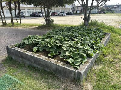 となりの区画にはサツマイモを植えましたが、勢いよくツルを伸ばしています。猛暑に負けないよう育ててていきたいです。