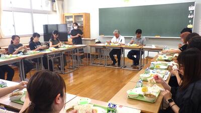 7月4日(金)にPTA 給食試食会を実施しました。今年度は講師として鴻巣市給食センターの庄司栄養教諭をお招きしました。この日のメニューはカレー南蛮うどん、そして、初登場メニューのサイダーかん。庄司先生もサイダーかんの感想を保護者の皆様から直接聞け、好評だったこと、とてもうれしそうでした。今年の給食試食会も大好評でした。ありがとうございました。