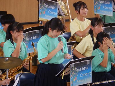 7月7日(月)の昼休みに、今年度も吹奏楽部が七夕コンサートを開催しました。体育館は生徒たちの熱い思いと気温で熱気に包まれました。ほぼ、全校の生徒が演奏を鑑賞するほど大盛況でした。