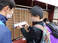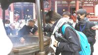 チェックポイントの浅草寺では、お参りやおみくじを引く生徒が多数いました。