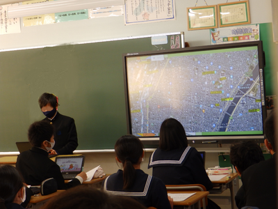マップを用いて自分が行った場所や歩いたルートを説明している生徒もいました。