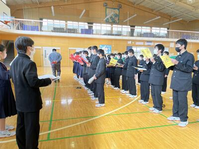 復唱をし、スキー教室成功への思いをひとつにしました。