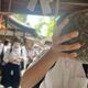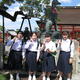 2組は伏見稲荷方面へ。映えスポットの赤い鳥居の中を歩き、重軽石を持ち上げました。時代劇のロケ地定番の上津屋橋ではみんなでクラス表示を作って、集合写真を撮りました。