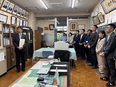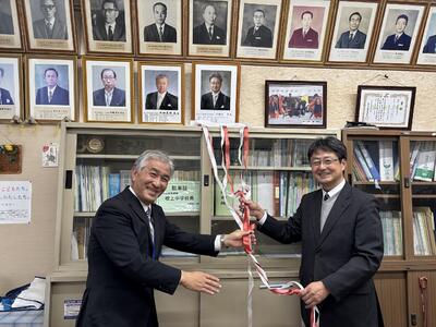 4月28日(月)の離任式の後、校長室にて令和7年度川里中学校校長として移動された二瓶亮前校長先生の掲額式を行いました。二瓶校長先生は第19代吹上中学校の校長として、3年間、吹上中学校にご尽力くださいました。吹上中学校の生徒、先生方に愛情をたっぷりとくださいました。二瓶校長先生、本当にありがとうございました。