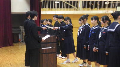 生徒会長から各専門委員会委員長に任命書が手渡されました。