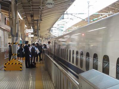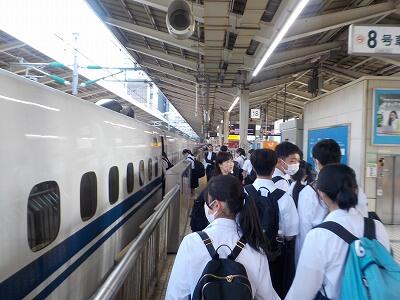 3年生にとって大きな行事である修学旅行が始まりました。この3日間は気温が高くなる予報ですが、それでも他の月に比べて良い季節の中、充実した旅行となると思います。写真は出発等の様子です。参加予定の生徒は全員無事に出発し、新幹線に乗車しました。皆、元気です。保護者の皆様、朝早くからのご対応、ありがとうございます。