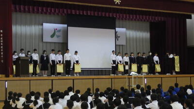 先日の離任式も生徒会が運営しました。「生徒が主役」で頑張っています。