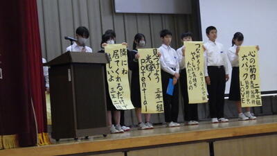 5月7日(水)の朝に人権集会を行いました。始めに「自分のことが好きですか。」や「毎日学校に行くのは楽しいですか。」等の本校生徒の人権アンケ―トの結果発表を行い、その後、各クラスから「いじめ0を目指したクラスの取り組み」の発表が行われました。生徒が主体となり全校で人権について考える素晴らしい機会になりました。