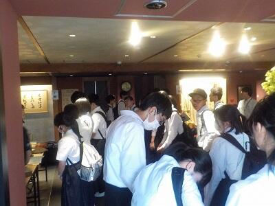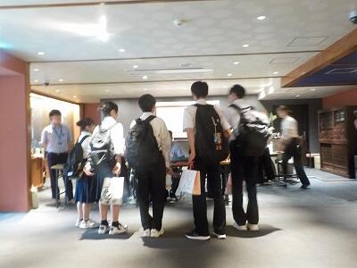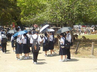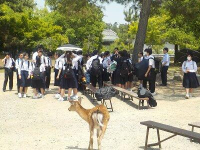 奈良・京都への修学旅行1日目は暑かったですが、青空の中、過ごすことができました。生徒は、自分達がたてた計画に沿って奈良・京都を見学し、全員無事に宿泊地の旅館に到着しました。事故のため電車が止まり、予定の時刻に到着できない班もありましたが、食事の時間には全員間に合いました。途中、酔ってしまって体調を崩した生徒もいましたが復帰して、班別行動に合流することができました。この後、体験学習を行い1日目を終えていきます。