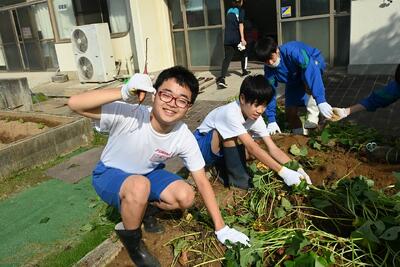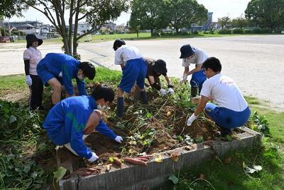 あすなろ学級 いも掘り(10月6日) 投稿: 吹上中学校 (10:22) 10月6日(月)の1時間目、あすなろ学級ではいも掘りを行いました。 大小さまざまないもが掘れました。大きいものでは握りこぶしよりも大きなものもありました。 この後、どのように調理して食べるのか楽しみですね。 -