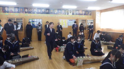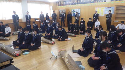 研究実践中間発表会(2月10日) 投稿: 吹上中学校 (02/12) 2月10日(火)に研究実践中間発表会の研究授業を2年2組の音楽の授業で行いました。市教育委員会の先生方や本校の先生方が参観する中、生徒はとても意欲的に箏を弾く活動に取り組み、また、日本の伝統的な和楽器箏の音色や響きを味わっていました。来年度の11月に本研究の本発表となります。今後も生徒の主体的で深い学びの実現に向けて、これからも教職員一同、研究に励んでまいります。 -